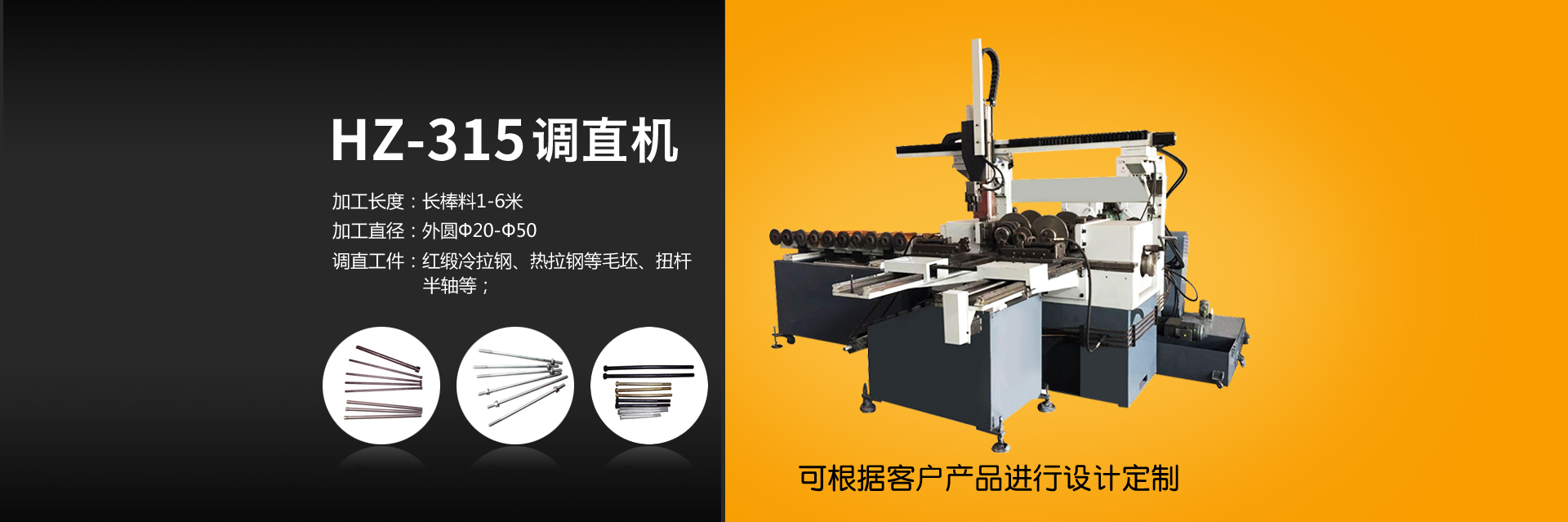 調(diào)直機專用于圓棒料毛坯或熱處理變形材料,通過雙曲線原理進(jìn)行擠壓達(dá)到調(diào)直效果。